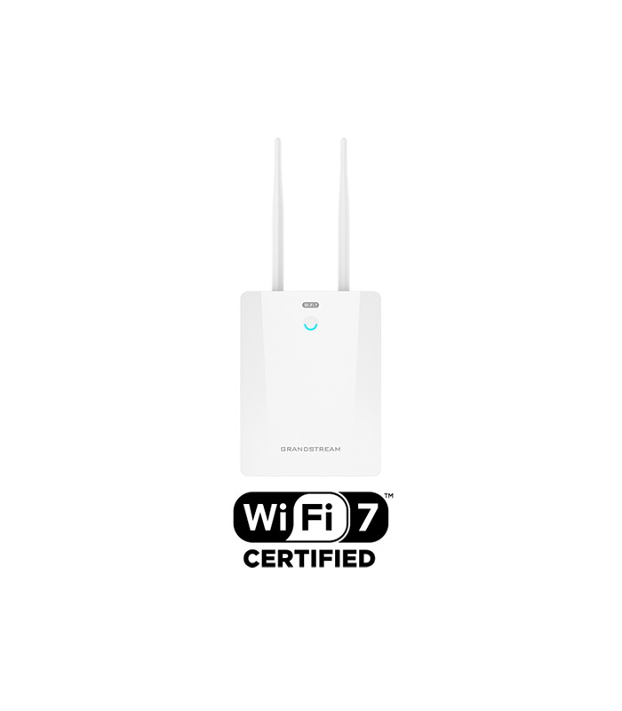 The GWN7670LR is a long-range Wi-Fi 7 access point, ideal for medium-to-large businesses that need to provide long-range coverage. It offers IP66-level weatherproof capability, dual-band 2x2:2 MIMO with DL/UL OFDMA technology and a sophisticated antenna design for maximum network throughput and expanded Wi-Fi coverage range. It supports flexible switching between internal directional antennas and external omnidirectional antennas. It can be combined with directional antenna and PTMP technology (pending) to serve as a professional long-range wireless bridge. With 4096 QAM modulation, Wi-Fi 7 achieves a significant increase in data transfer rates. MLO technology optimizes spectrum resource utilization to ensure a smooth experience for every user. To ensure easy installation and management, the GWN7670LR uses a controller-less distributed network management design in which the controller is embedded within the product’s Web User Interface. The GWN7670LR is also supported by GDMS Networking and GWN Manager, Grandstream’s cloud and on-premise Wi-Fi management platform. It is the ideal Wi-Fi AP for voice-over-Wi-Fi deployments and offers a seamless connection with Grandstream’s Wi-Fi capable IP phones. With support for advanced QoS, low-latency real- time applications, mesh networks, captive portals, BLE 5.3, 256 concurrent clients per AP, 1x2.5 Gigabit network port with PoE+ and 1x 2.5 Gigabit SFP port. GWN7670LR is an ideal long-range Wi-Fi access point for enterprises, multiple floor offices, warehouses, parks, hospitals, schools and more.