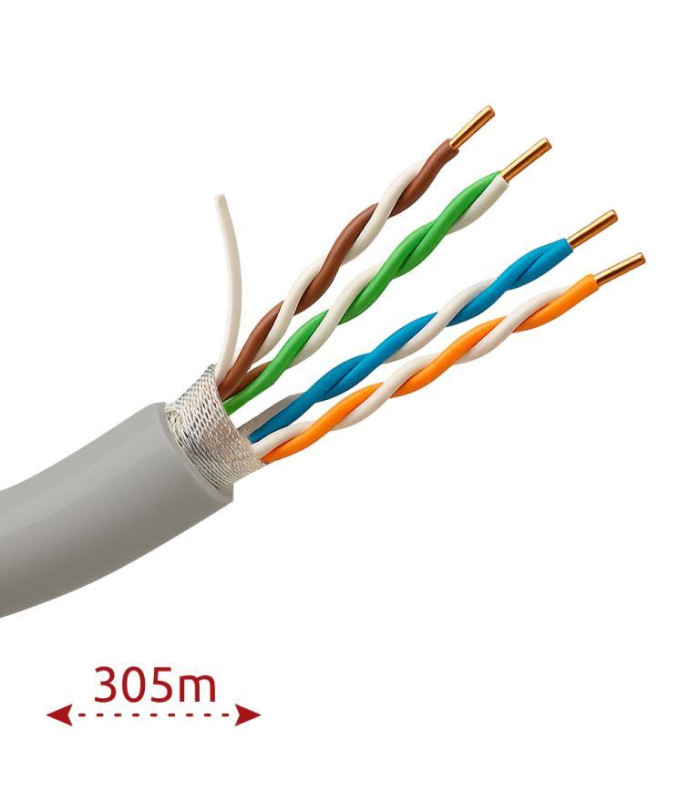 Cavo FTP - Categoria 5E - Bobina da 305 metri - Cover grigia - Diametro 5.5 mm - Compatibile con Balun