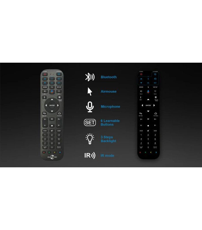 - Yes. The remote can be manually switched into IR mode. In IR mode, the remote will generate Dune HD IR codes (with "CF CF" customer code). These IR codes are compatible with all 2018+ Dune HD media player models except Google-certified Dune HD models.