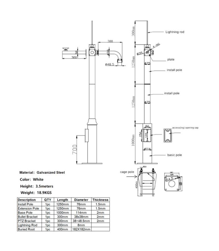 Palo di 3.5 metri di altezza per installazione di telecamera CCTV esterna