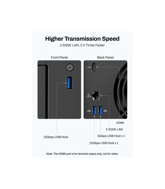 Con quattro alloggiamenti per dischi SATA (fino a 120 TB totali), supporto RAID e porta di rete 2,5 GbE, offre trasferimenti più rapidi e spazio ampio per backup, file multimediali e librerie di foto/video.