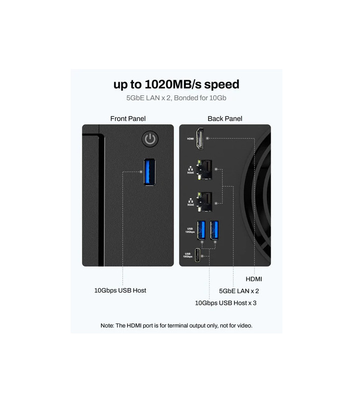 Grazie alla configurazione 3+4 bay hybrid storage – con quattro alloggiamenti SATA per HDD/SSD e tre slot M.2 NVMe per cache o storage ad alta velocità – supporto RAID/TRAID e doppia porta di rete 5 GbE, offre trasferimenti estremamente rapidi e uno storage flessibile e scalabile per backup, file aziendali e librerie multimediali.