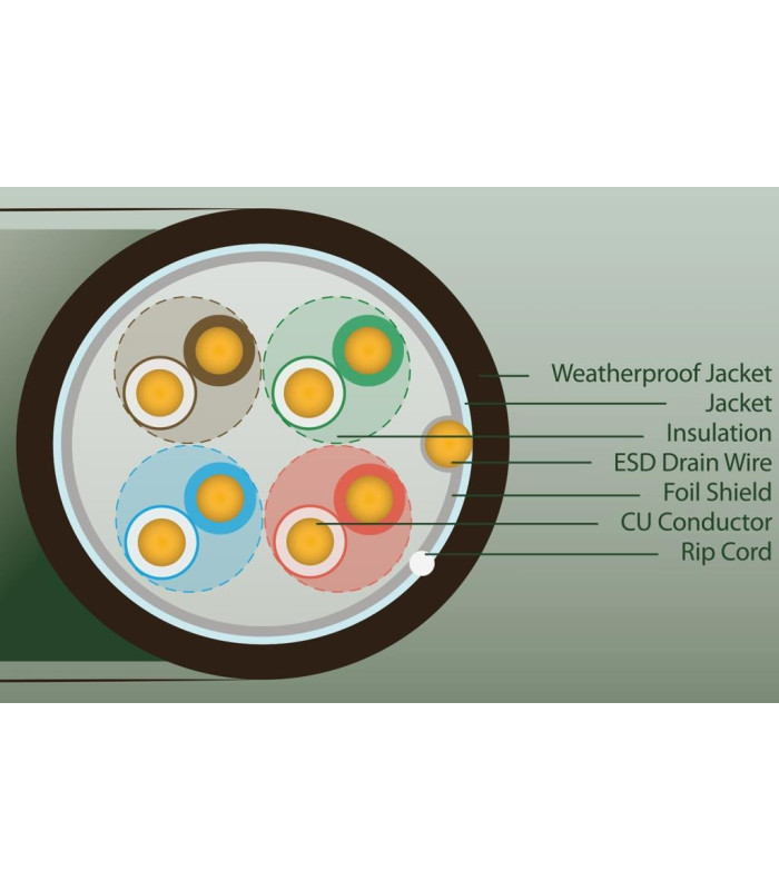 I conduttori sono realizzati al 100% in rame, senza alcuna aggiunta di alluminio. Il diametro del conduttore è di circa 0,48 mm - 24AWG. Il rame ha proprietà di trasmissione migliori rispetto all'alluminio utilizzato nei cavi CCA. La differenza si sente soprattutto quando si alimenta con PoE: il conduttore in rame è caratterizzato da una resistenza inferiore, quindi è possibile alimentare i dispositivi senza preoccuparsi di grandi cadute di tensione.